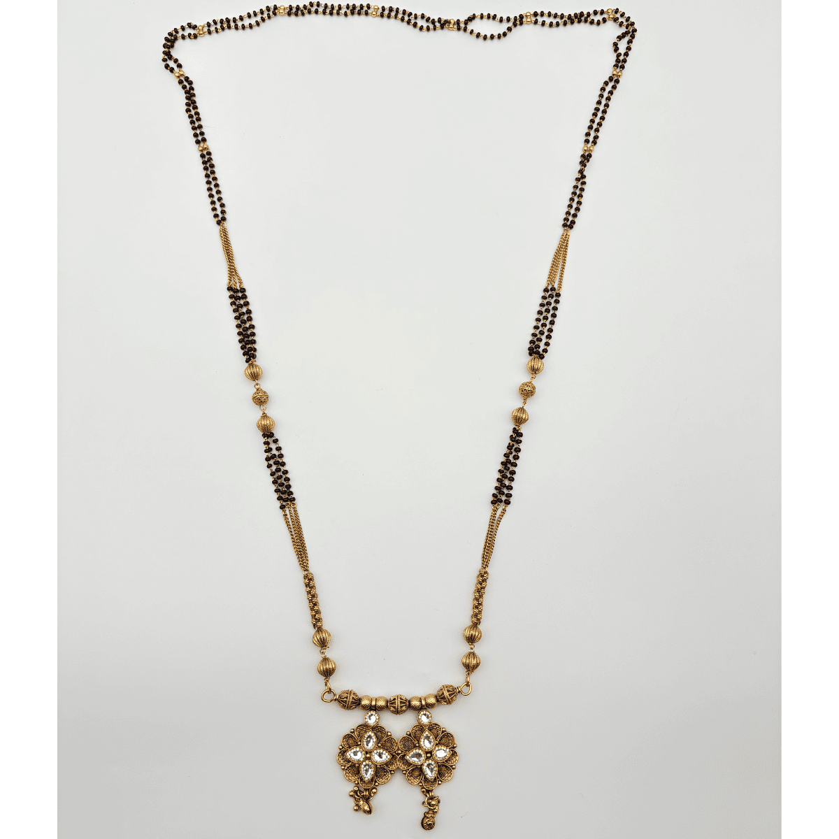 An elegant heritage-style Mangalsutra crafted in durable brass and finished with premium Rajwadi Victorian polish, adorned with sparkling Swarovski stones for timeless luxury and shine.